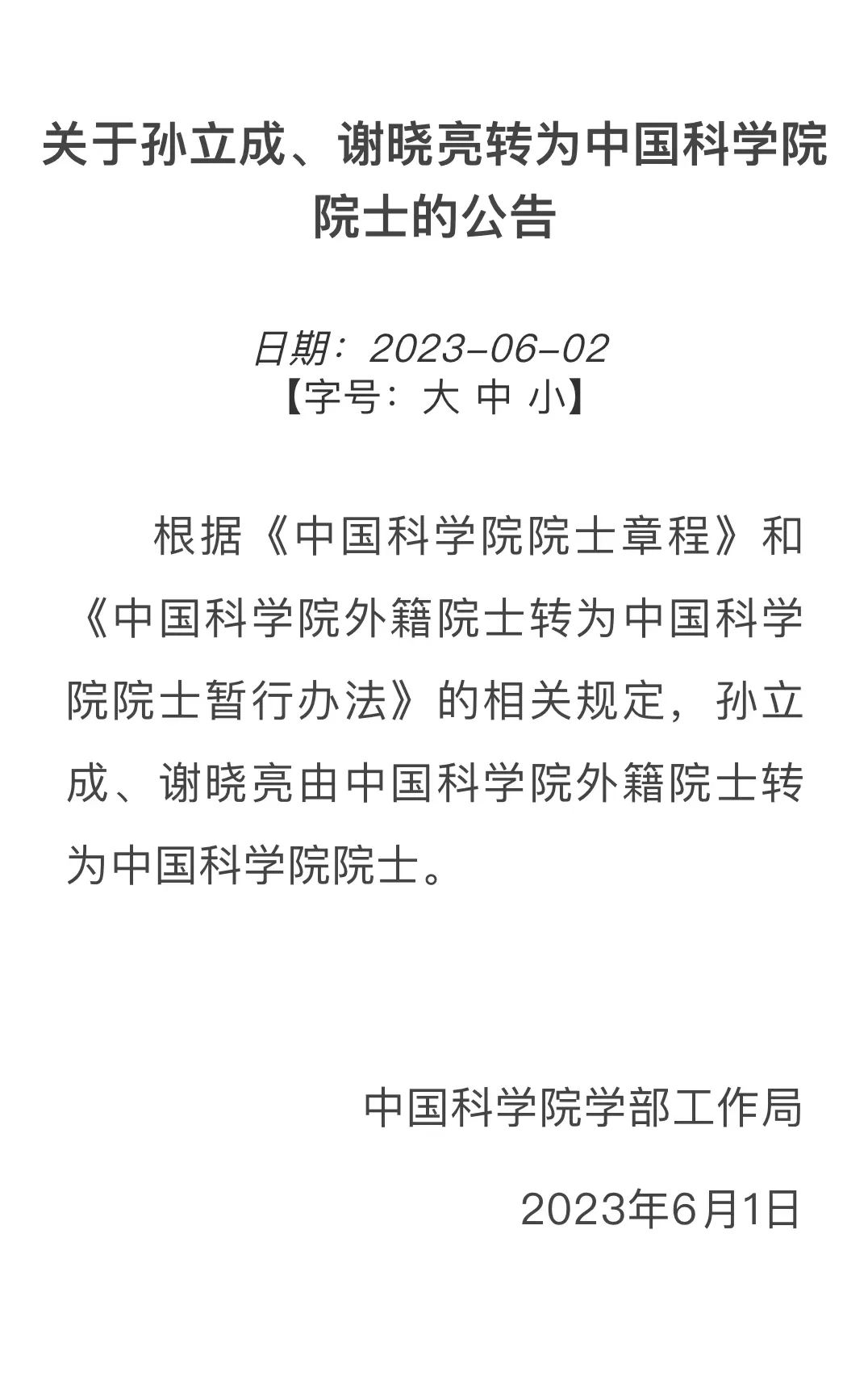 开云体育软件官网 首页 / 中心动态 / 开云体育软件官网 / 正文 喜报!中心主任孙立成由中国科学院外籍院士转为中国科学院院士 浏览量:时间:2023年06月02日 15:38 公告原文请点击:http://casad.cas.cn/