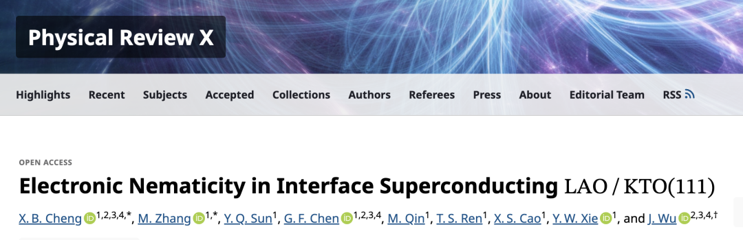 这一回,西湖大学理学院吴颉团队找到了其中一把:他们联合浙江大学谢燕武研究团队,利用自主开发的高精度角分辨电阻(ARR)测量方法,在LaAlO₃/KTaO₃(111)(LAO/KTO)超导界面中,首次系统地测量并揭示了超导态及其附近的量子态中电子向列性的演化规律。这项成果近日发表在物理学顶刊《Physical Review X》上。