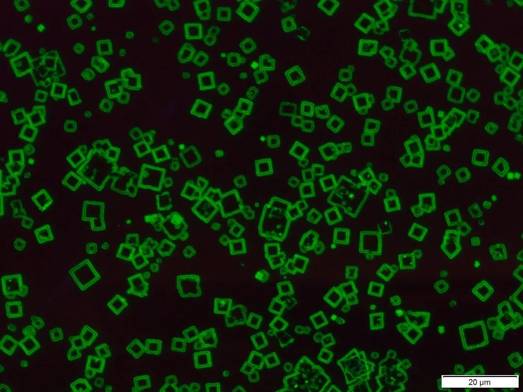 荧光显微镜下的钙钛矿外延异质结,呈现回字形