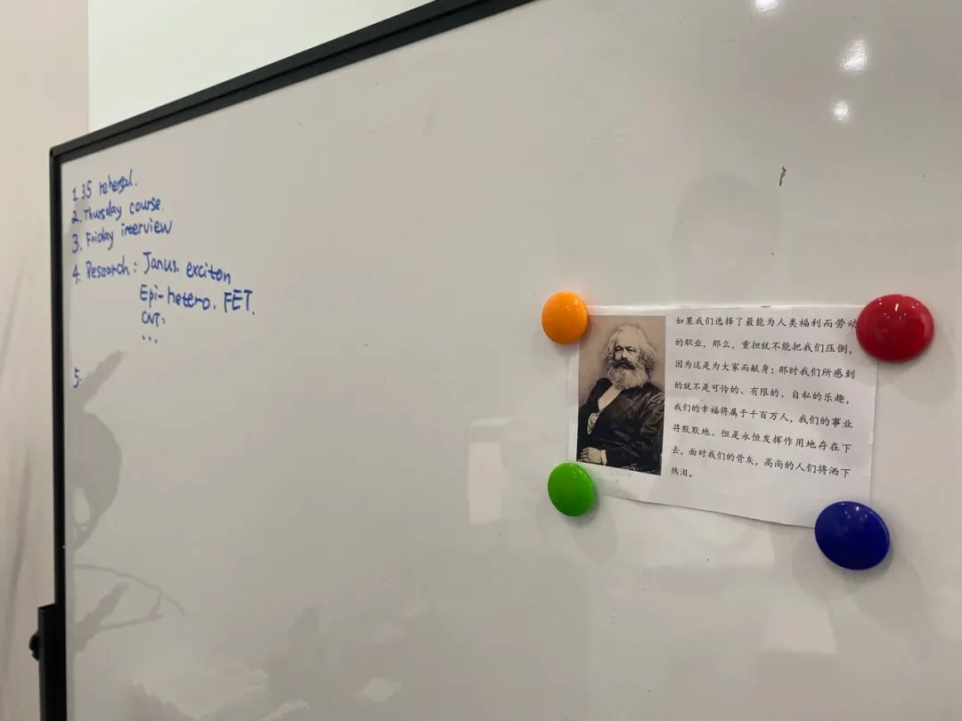 在师恩政的办公室里,贴着一张小纸片,上面是马克思的头像,以及他在《青年在职业选择时的考虑》里的一句话: