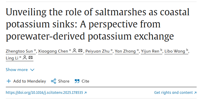 是的,高二考入西湖、正在读大三的孙正涛,收获了人生的第一篇SCI文章,以独立一作在环境科学期刊Science of the Total Environment发表了题为“Unveiling the role of saltmarshes as coastal potassium sinks: A perspective from porewater-derived potassium exchange”的论文。