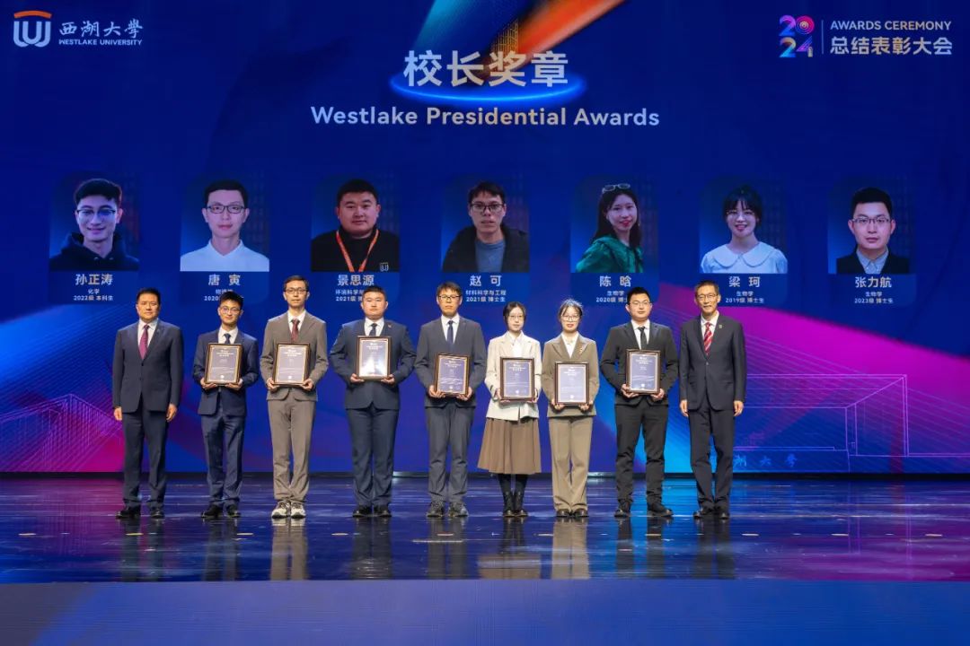 孙正涛(左二)获得2024年度西湖大学校长奖章